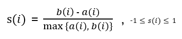 - \(s(i)\)가 -1에 가까운 경우는, 데이터 포인트 i가 오히려 이웃 클러스터에 더 가까운 경우를 의미하며 아예 잘못 할당된 상태라고 볼 수 있다. 그래서 이러한 경우는 실제로는 거의 나타나지 않는다.
