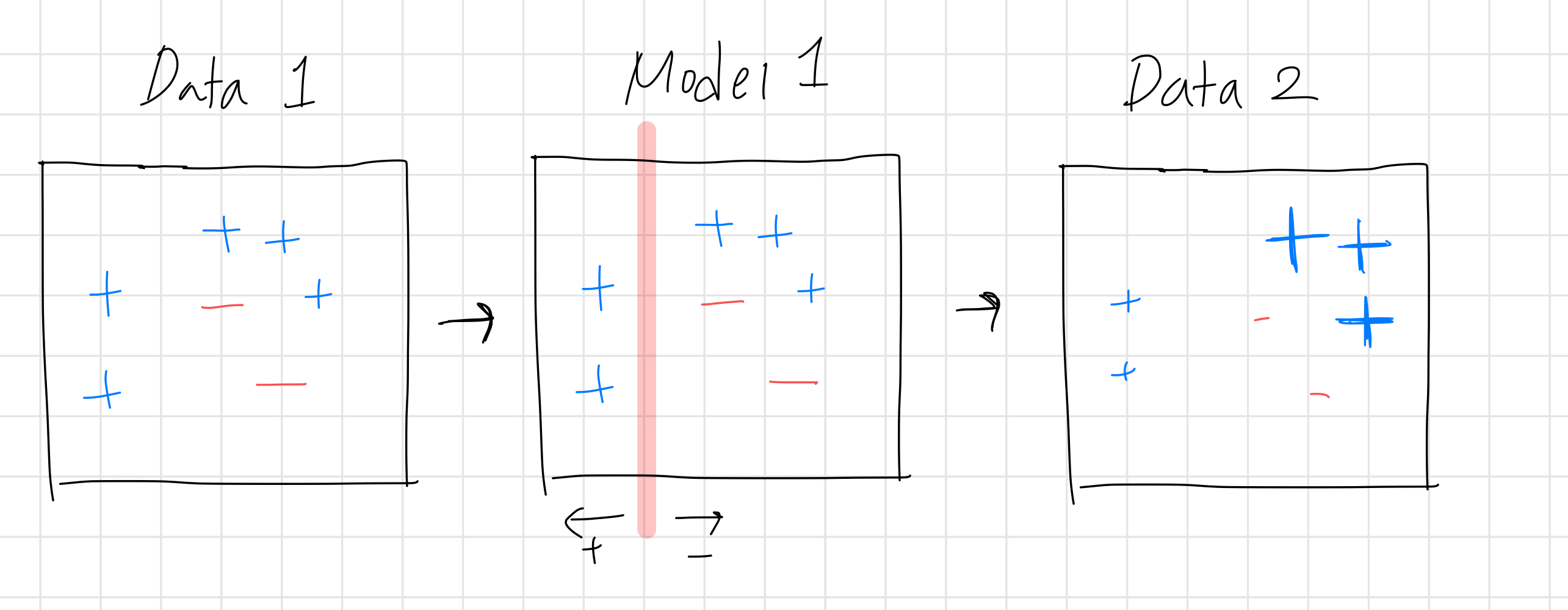 - 앞선 모델에서 error가 컸던 example은 이어서 학습하는 모델에 대해서는 error가 작게 나올 것