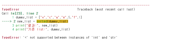 list 객체에 string과 integer가 섞여있는 경우 sorted() 동작하지 않음