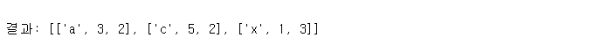 list 객체에 string과 integer가 이중 list 안에 들어있는 경우 아래와 같이 동작